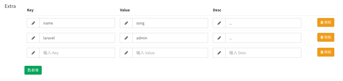 $form->text($column, [$label])->datalist(['key' => 'value']);